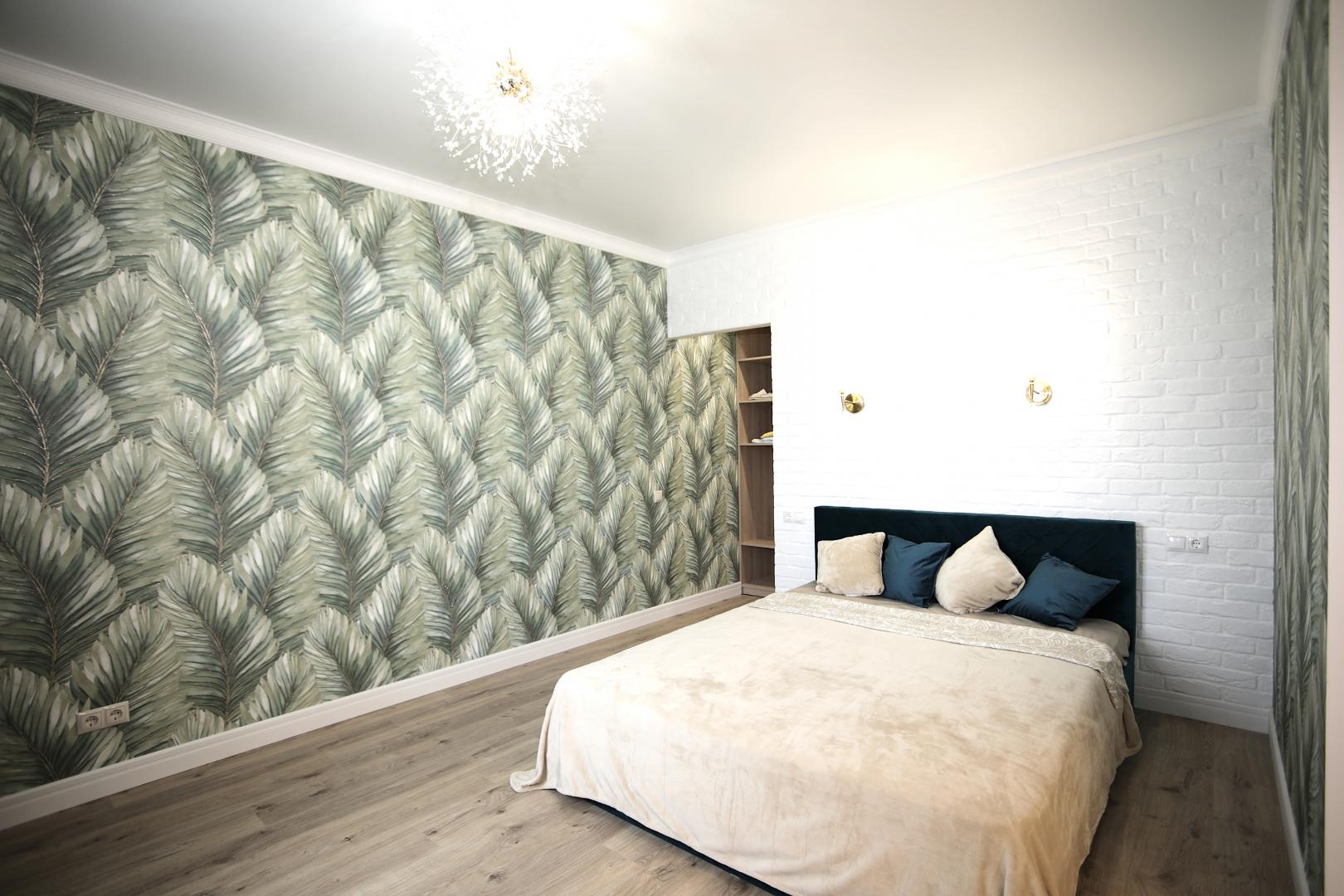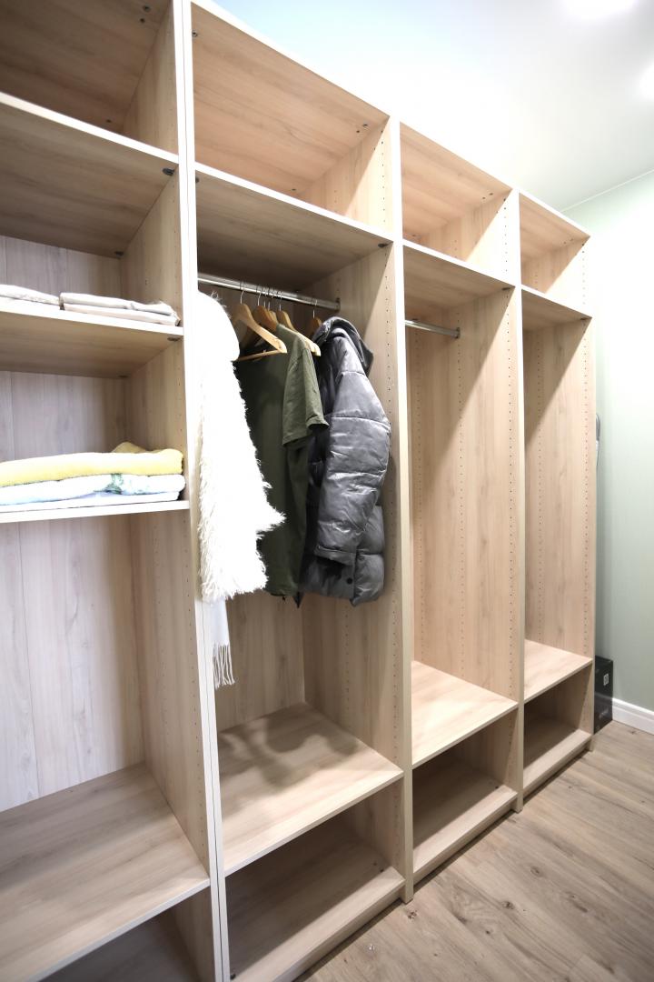 Зоны хранения: вместительный шкаф-купе на входе, просторная гардеробная за зоной кровати.